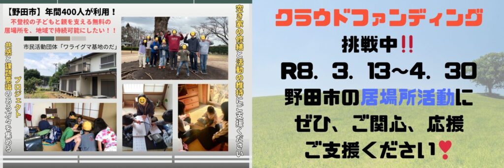 野田市の子どもの居場所「ワライグマ基地のだ」を支援するプロジェクト‼️